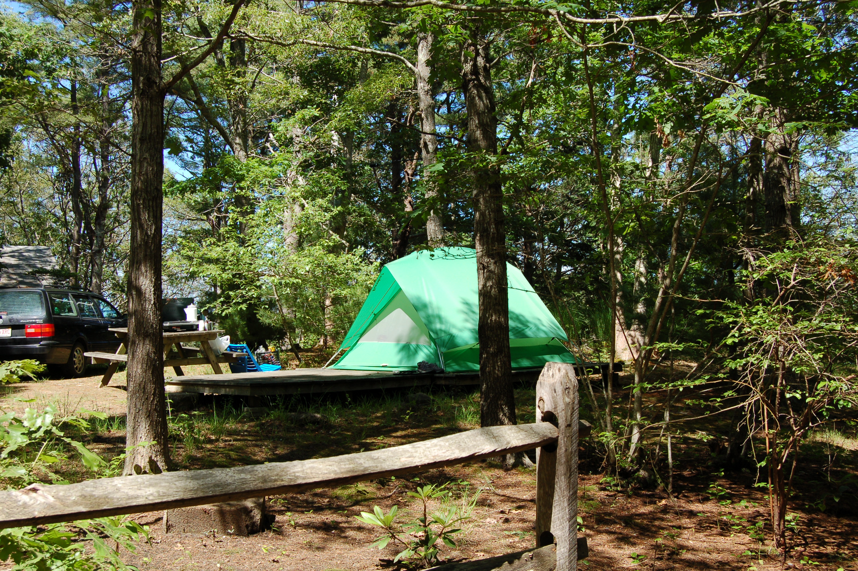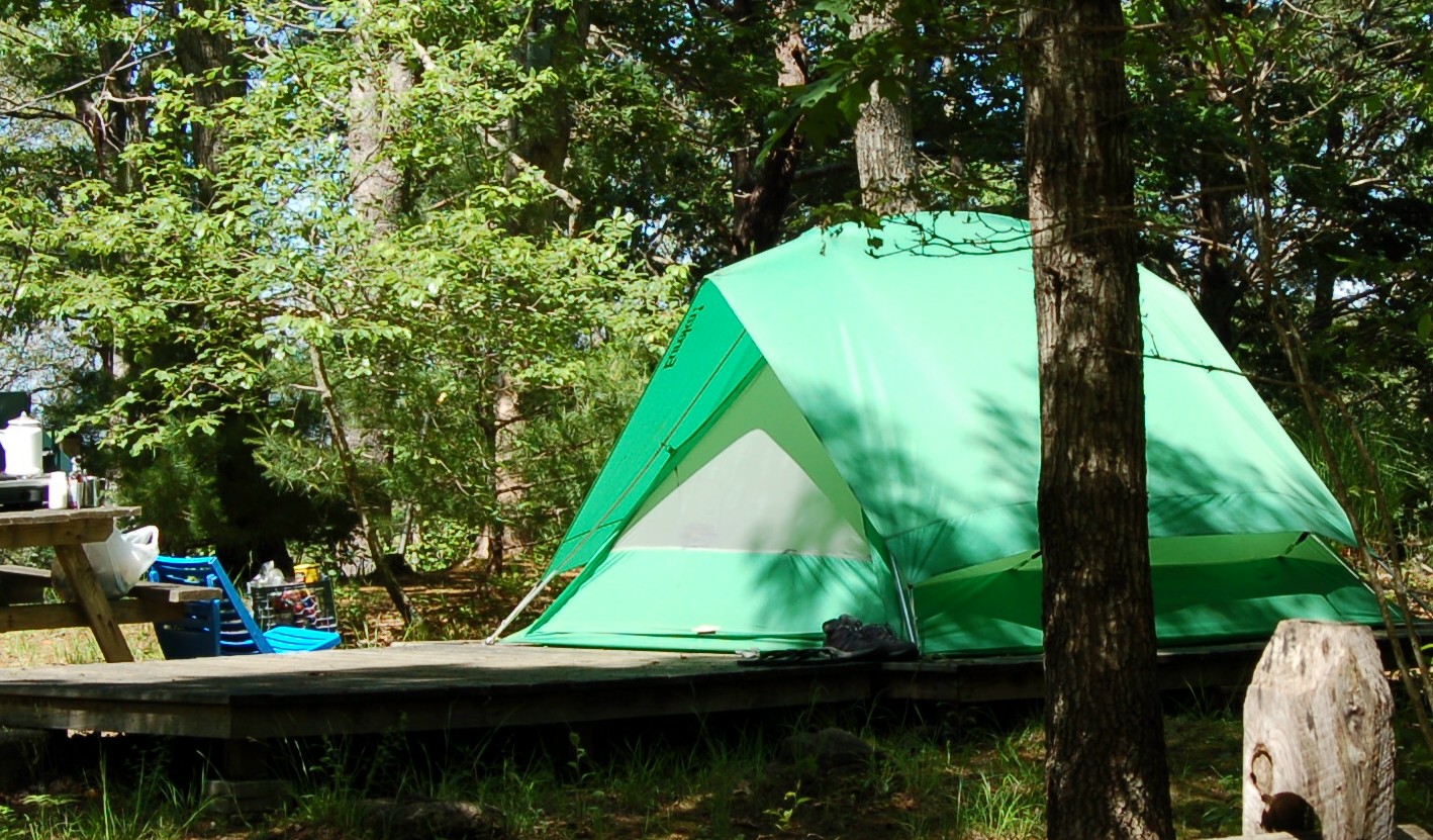 All sites include electric and water hookups. Due to power limitations (30 amp service) air conditioning use is prohibited in the camp.